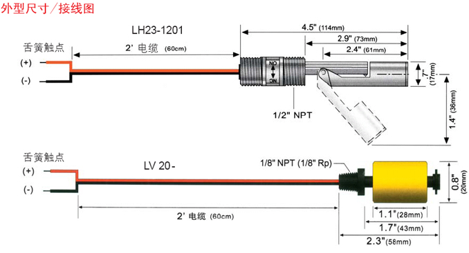 通用的小型浮子液位开关应用于要求不是非常严格的场合。塑料传感器